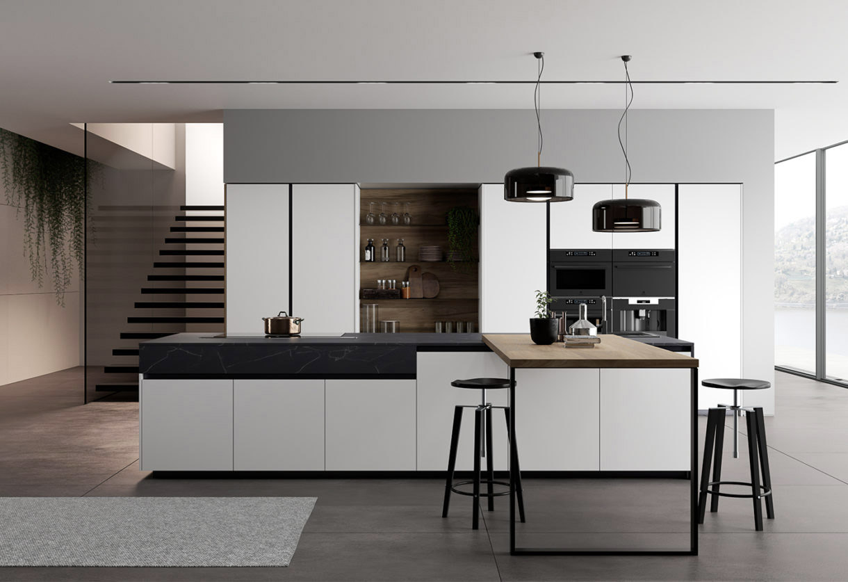 Il modello Glass 2.0 è una cucina moderna che si caratterizza per le finiture in vetro, le linee semplici e le strutture funzionali e versatili. Il brand Arredo3 Cucine ha creato una cucina compatta, con diversi complementi di arredo che rendono questo ambiente fruibile, accogliente e di grande impatto estetico. La cucina si snoda lungo un’unica parete, dove sono presenti diversi pensili, una colonna a vista con ripiani e gli elettrodomestici di ultima generazione. Al centro di Glass 2.0 si colloca l’ampia ed elegante isola, con top in HPL Solid, lavello e piano cottura. L’isola centrale è arricchita con un piano snack, per rendere ancora più piacevole e accogliente l’ambiente. La cucina di Arredo3 Cucine è modulabile, con una struttura a L e isola centrale, che si può modificare in base alle dimensioni degli ambienti.